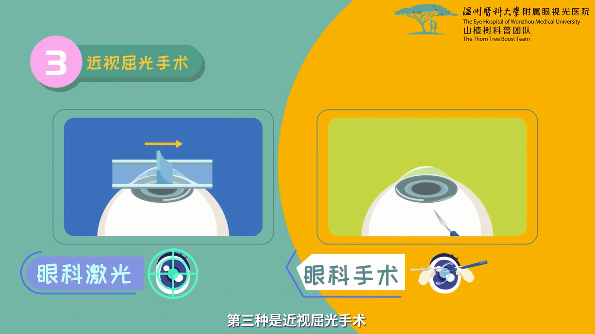 第三种是近视屈光手术简单来说,这类手术是通过眼科激光或眼科手术,将眼镜做在或是放在我们的眼内。